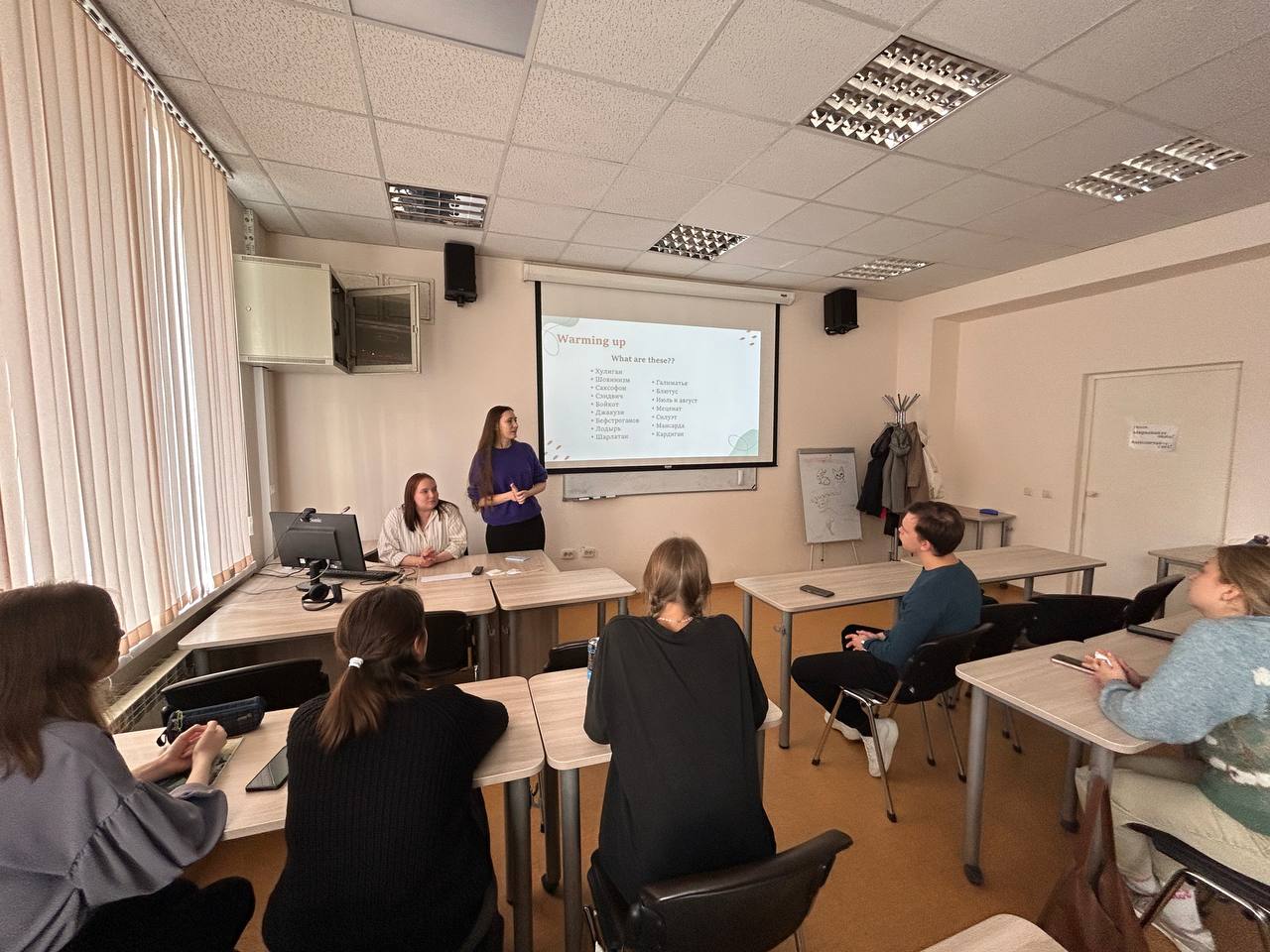 Ребята подготовили для первокурсников веселый и в тоже время серьезный квест «А сможешь ли ты стать переводчиком?». Анна Быстрова провела этимологическую игру, ведь переводчику важно знать историю и понимать происхождение различных слов. Алина Нижевич предложила решить несколько этических кейсов, так как карьера переводчика прямо зависит от его способности делать правильный нравственный выбор. Арина Гетманова подготовила самое сложное для первокурсников задание с реальными ситуациями устного перевода.