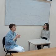 А у студентов группы 192115 неделя перевода выдалась и в образовательном пространстве. Ребята в интенсивном режиме начали осваивать курс «Менеджмент переводческих проектов», разработанный и реализуемый индустриальным партнёром, переводческим агентством АУМ (г. Новосибирск). Обучать студентов управлению переводческими проектами приехала операционный директор агентства Александра Шевякова.Будущие переводчики не смогли упустить шанс задать насущные вопросы о своей будущей профессии представителю отрасли и пригласили Александру на занятие по «Основам профессионального самоопределения», которое прошло в формате интервью. Студенты подготовили список вопросов и выступили в новой для себя роли интервьюера. Зрителями стали приглашённые на мероприятие студенты и магистранты ФИЯ.
