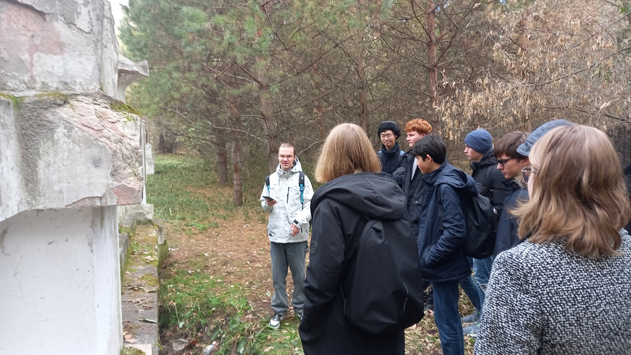 21 октября 2025 года ст. преподаватель Кафедры английского языка в сфере научной коммуникации Денис Владимирович Шепетовский организовал экскурсию по университетской Роще со студентами 1 курса ИПМКН (гр. 932520 и 932521). Экскурсия проходила на английском языке.